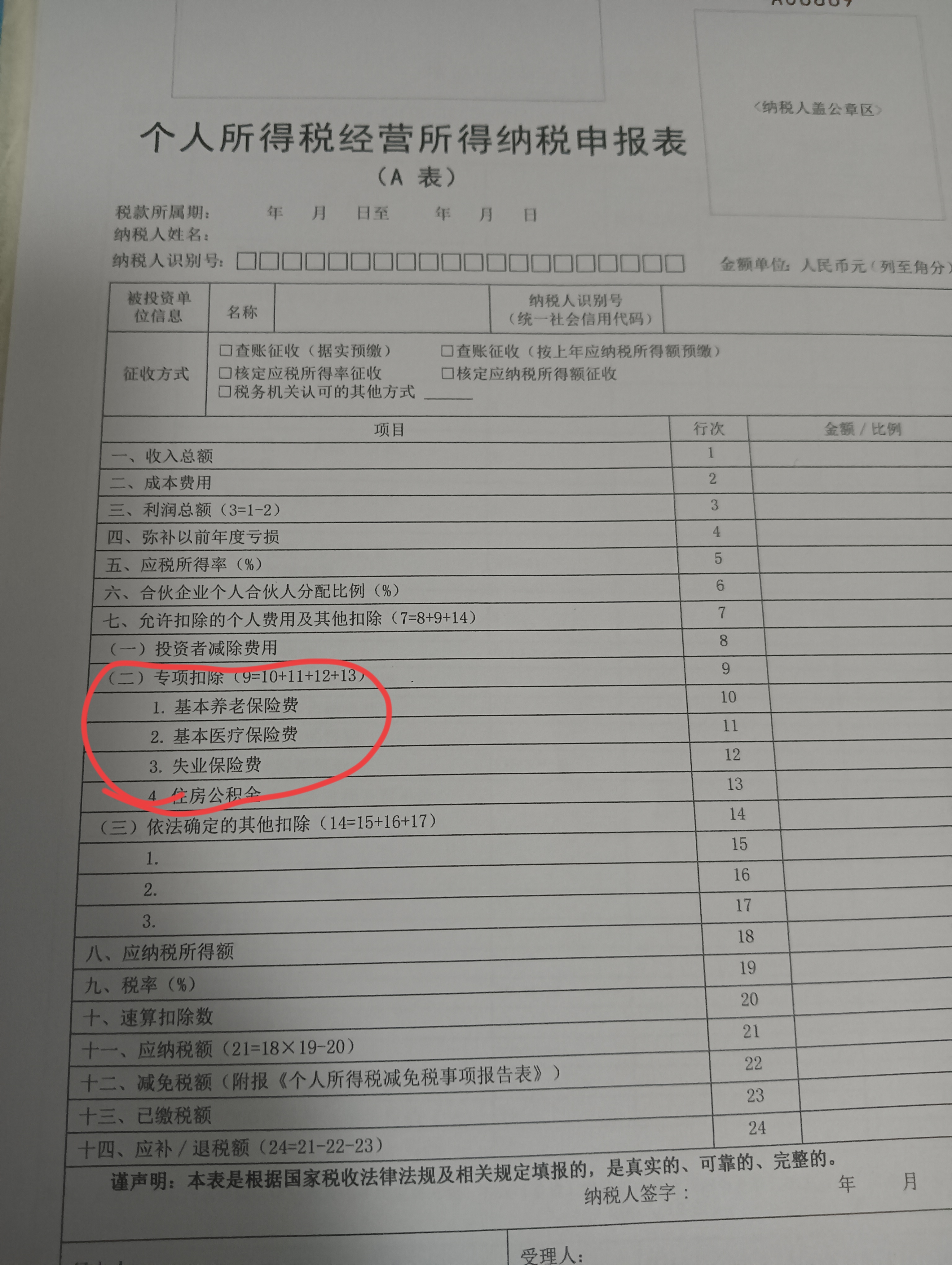 个体工商户专项扣除填的是业主个人承担的社保和公积金吗