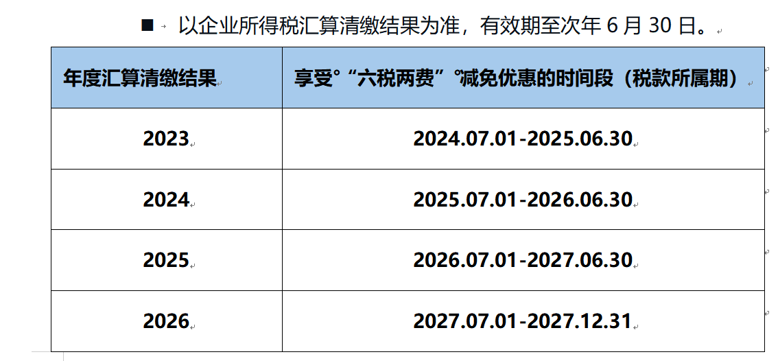 按小微企业适用六税两费减半优惠:上半年的判断和下半年的判断依据的汇算清缴年份不一样,比如2026年上半年是否适用小微六税两费优惠看2024年度汇算清缴报表;2026年下半年是否适用小微六税两费优惠看2025年度汇算清缴报表。当然这些现在也不需要企业自行判断,电子税务局会自动判断。