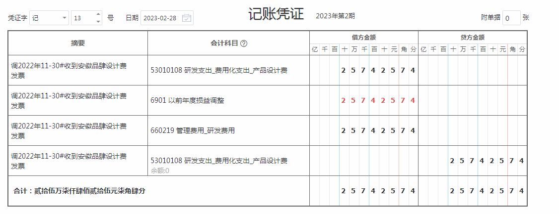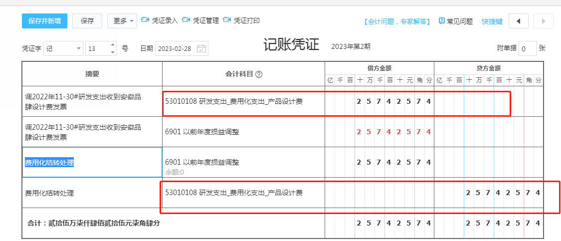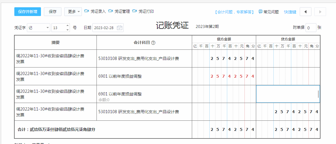 借:研发支出-费用化-设计费 贷:以前年度损益调整 借:管理费用—研发费用(以前年度损益调整) 贷:研发支出-费用化-设计费 老师我22年应该做研发费用设计费的科目做成了管理费用设计费了 我这样调整凭证行不行