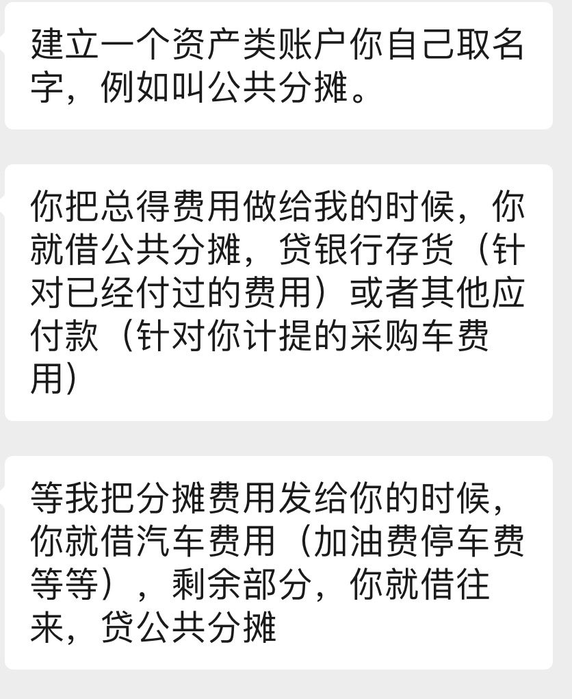 分店有辆采购汽车使用,汽车使用费已经付了2127,计提了946,现在总部分摊1781,那分录怎么做呢,图里是领导告诉我的方法,我不会