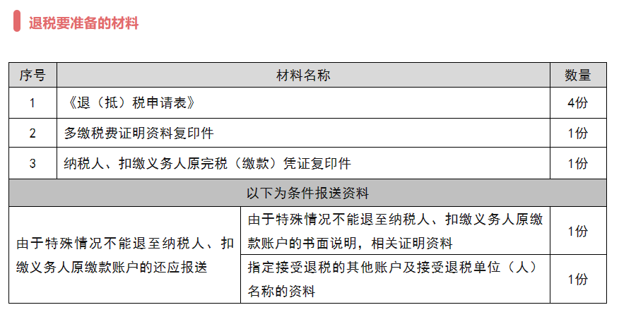 找税务机关退税,需要准备哪些资料;办结后需要等待多久才能推至账户