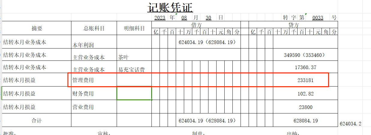 请问下图,结转费用时管理费用是233181?还是247979?在科目余额表应该填233181?还是247979?
