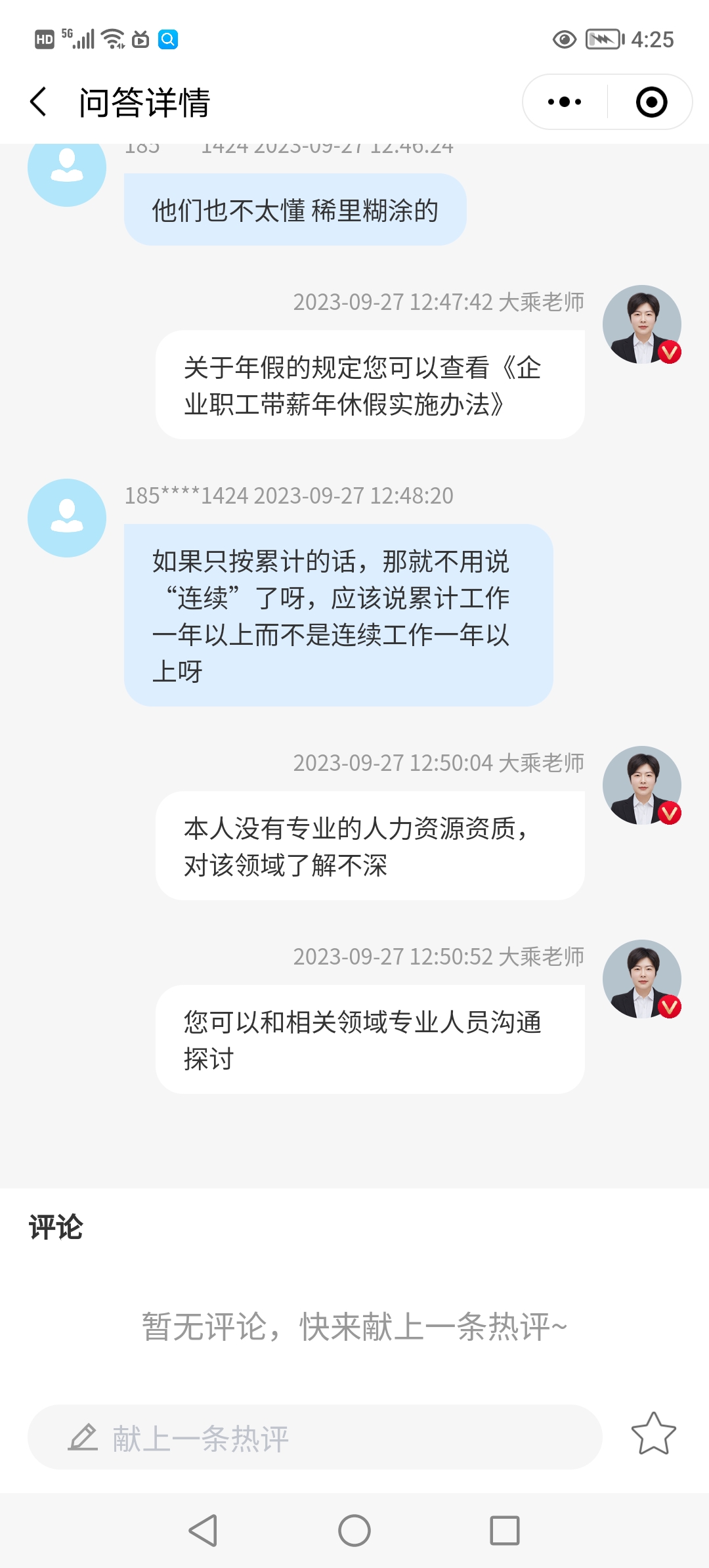 @大乘老师您好!我问的是带薪年休假的相关问题,这个问题不是在财税政策范围内吗? 为什么老师说自己对相关领域不太了解呢?比较疑惑,谢谢老师!
