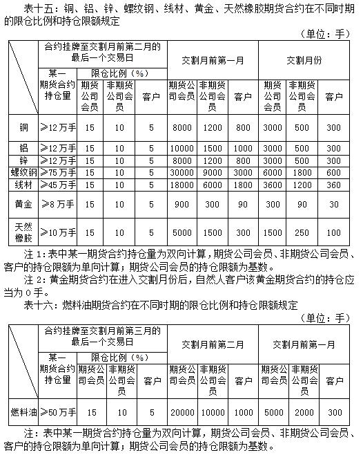 第十八条期货公司会员、非期货公司会员和客户的各品种期货合约在不同时期的限仓比例和持仓限额具体规定如下: