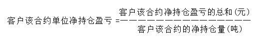 客户该合约净持仓盈亏的总和,是指在客户该合约的历史成交库中从当日向前找出累计符合当日净持仓数的开仓合约的实际成交价与当日结算价之差的总和。