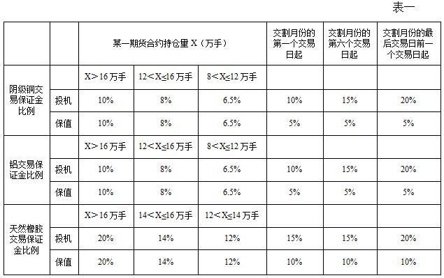 第四条交易所实行交易保证金制度。阴极铜、铝期货合约的最低交易保证金为合约价值的5%,天然橡胶期货合约的最低交易保证金为合约价值的10%。经中国证监会批准交易所可以调整交易保证金。