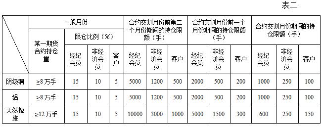 表中某一期货合约持仓量为双向计算,经纪会员、非经纪会员、客户的持仓限额为单向计算;经纪会员的限仓数额为基数。