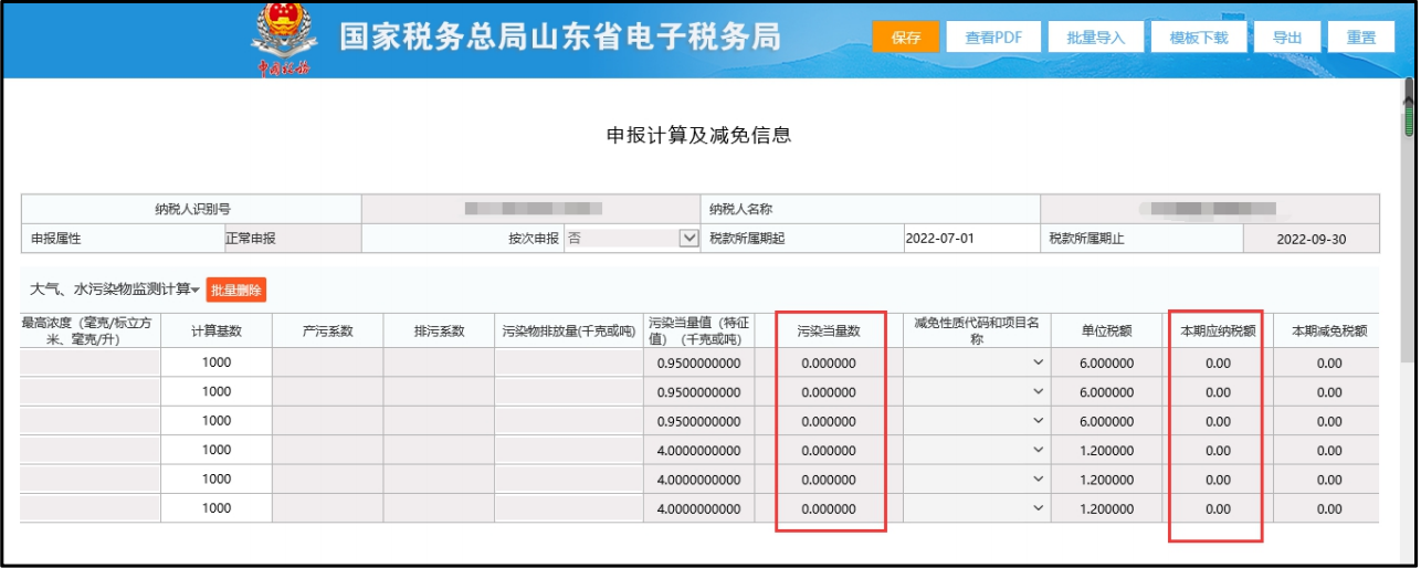 我单位申报环境保护税,在“申报计算及减免信息”模块填写“计算基数”后,“污染当量数”和“本期应纳税额”栏都不计算怎么办?