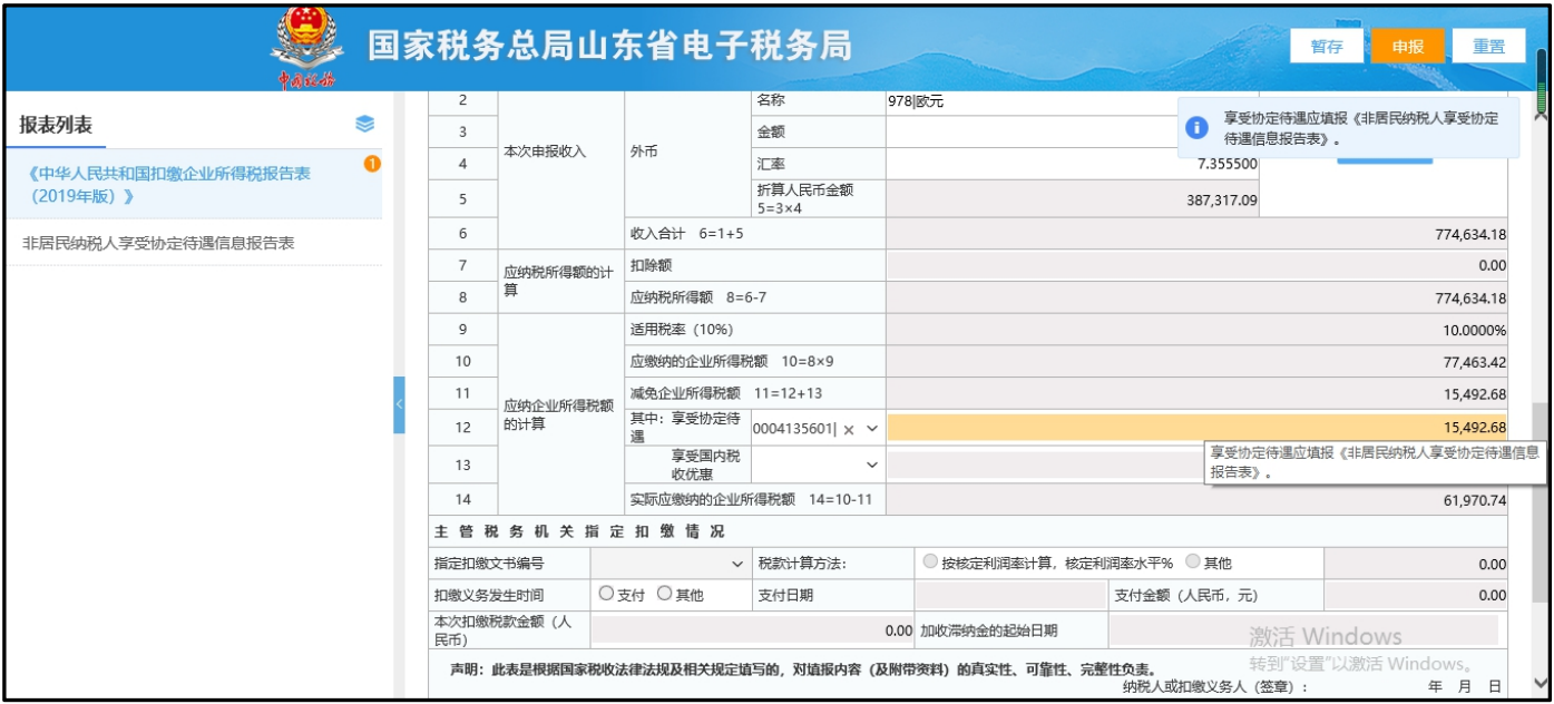 我单位申报扣缴企业所得税报告表,填写完“其中:享受协定待遇”栏后,系统提示享受协定待遇应填报《非居民纳税人享受协定待遇信息报告表》,应如何处理?