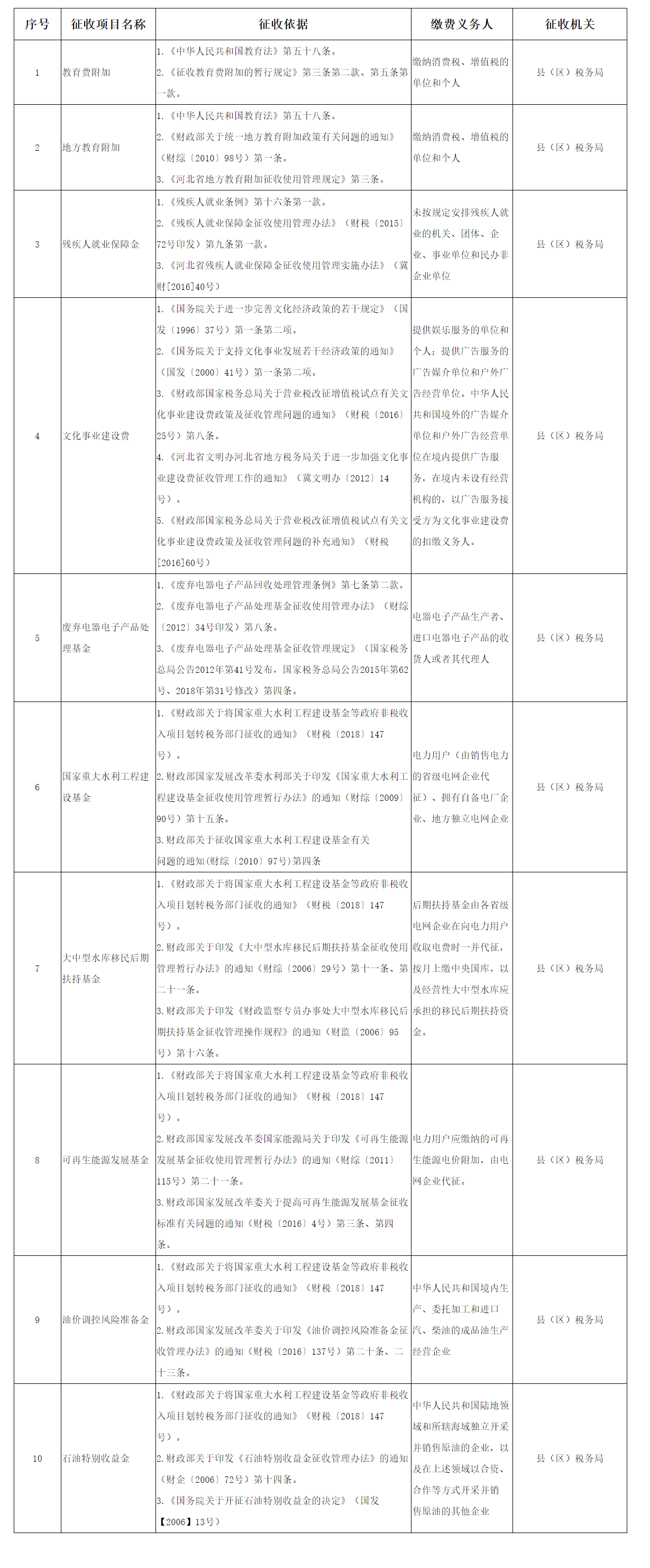 河北省税务局发布非税收入征收税费项目清单