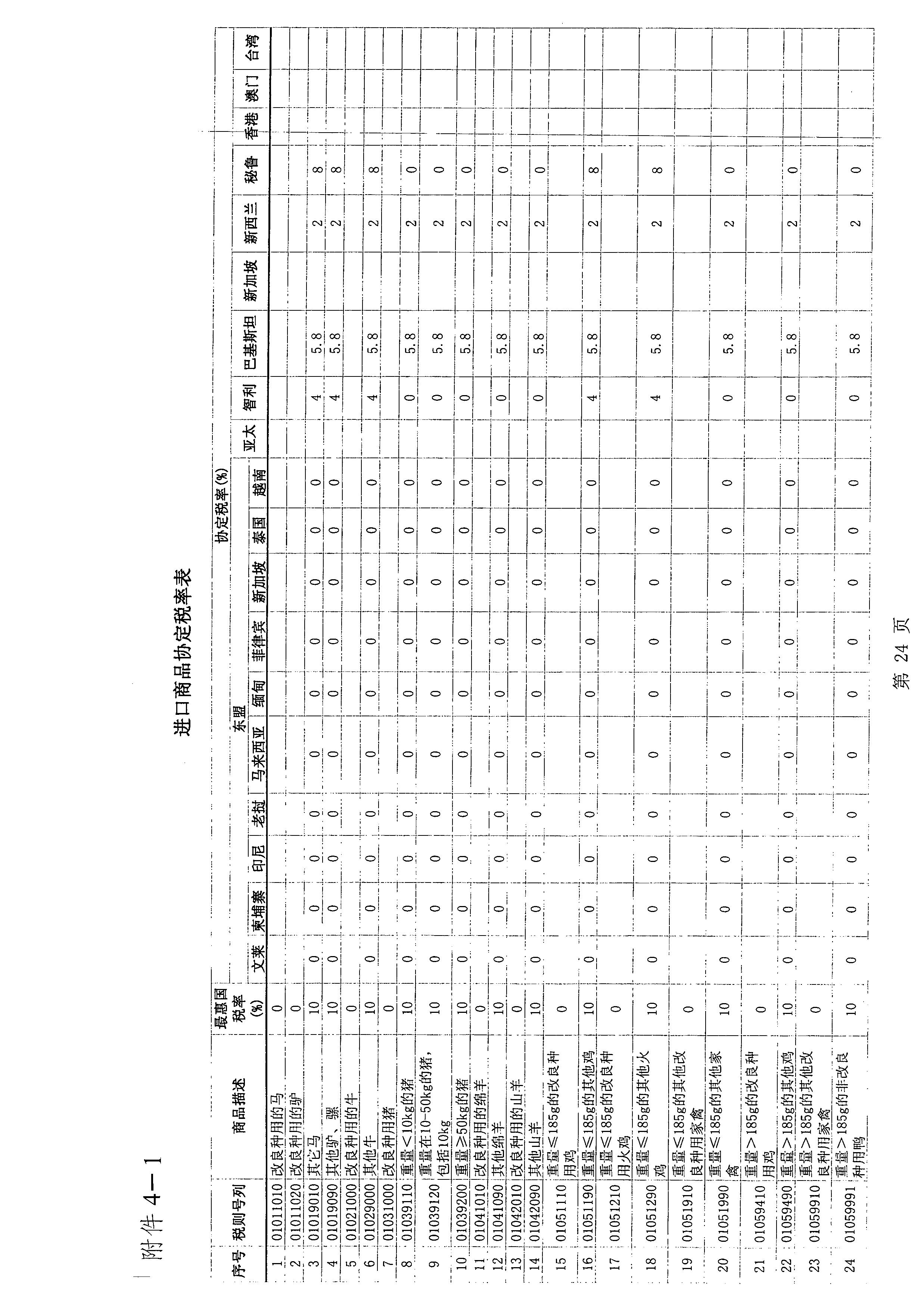 (三)根据我国与有关国家或地区签署的贸易或关税优惠协定,对有关国家或地区实施协定税率(见附表四)。