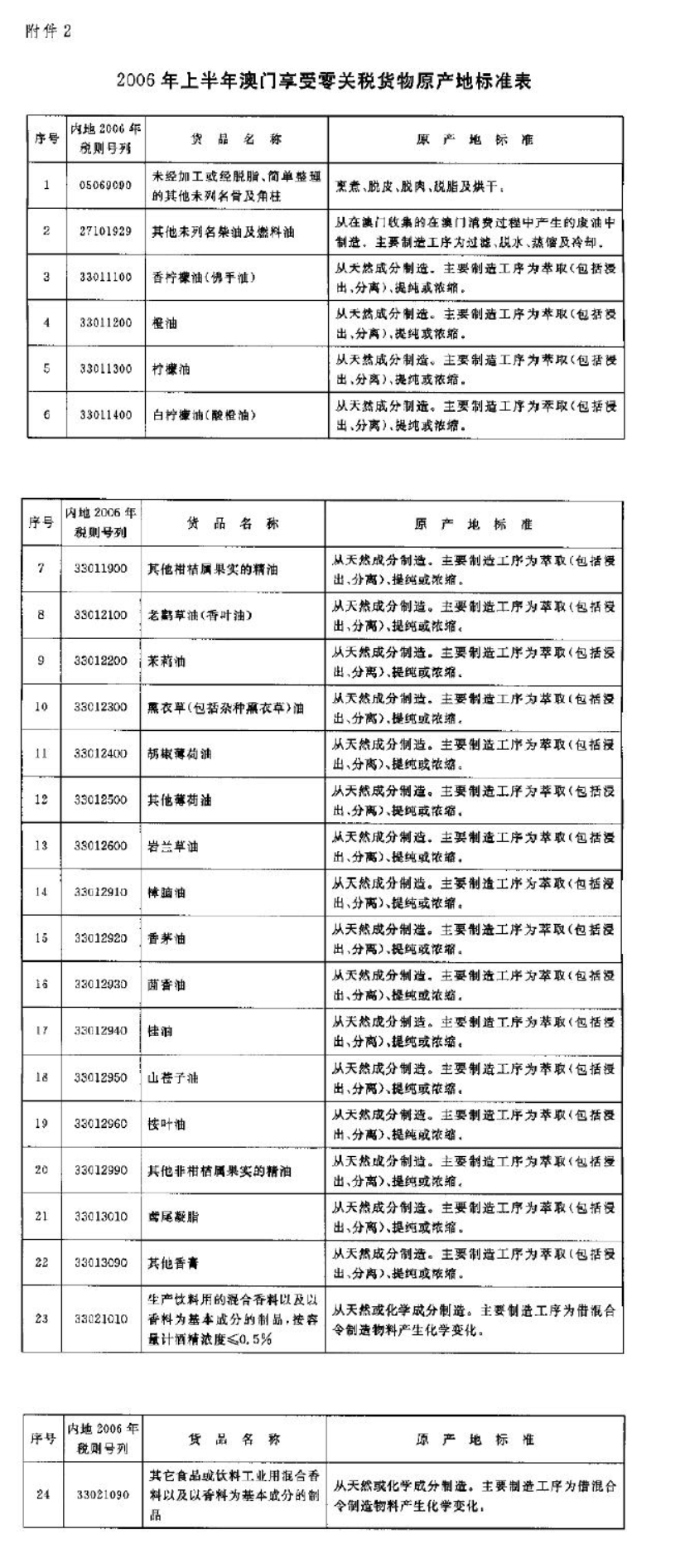 2.2006年上半年澳门享受零关税货物原产地标准表