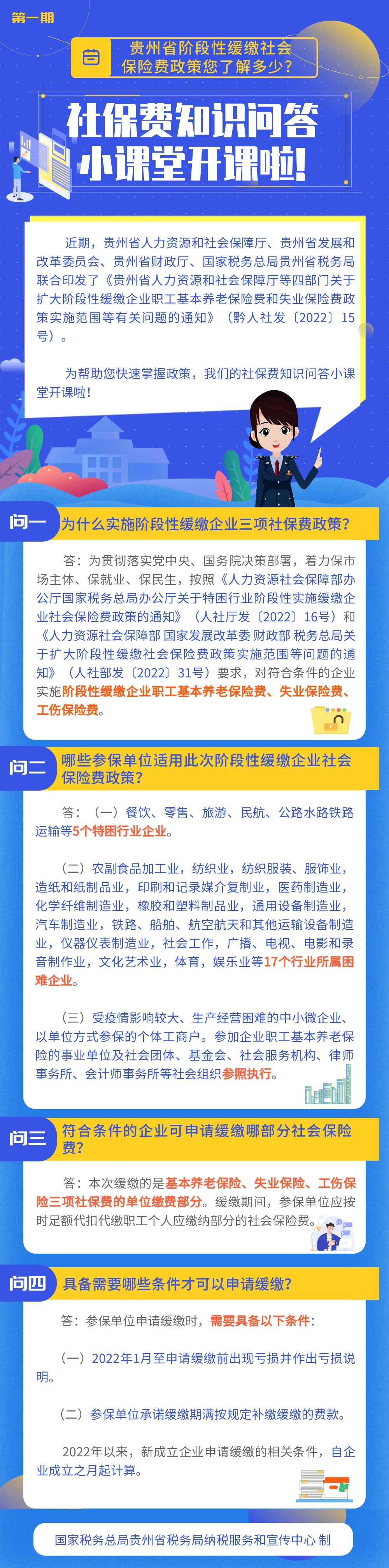 国家税务总局贵州省税务局——社保问答丨贵州省阶段性缓缴社会保险费政策您了解多少?