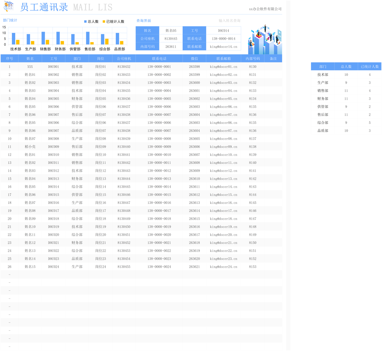 员工通讯录登记表(支持查询)