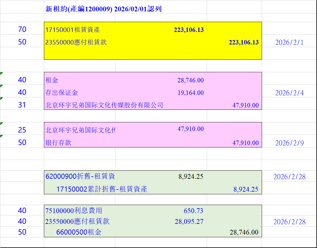 银行存款(开始日或之前支付的租赁付款额、初始直接费用)