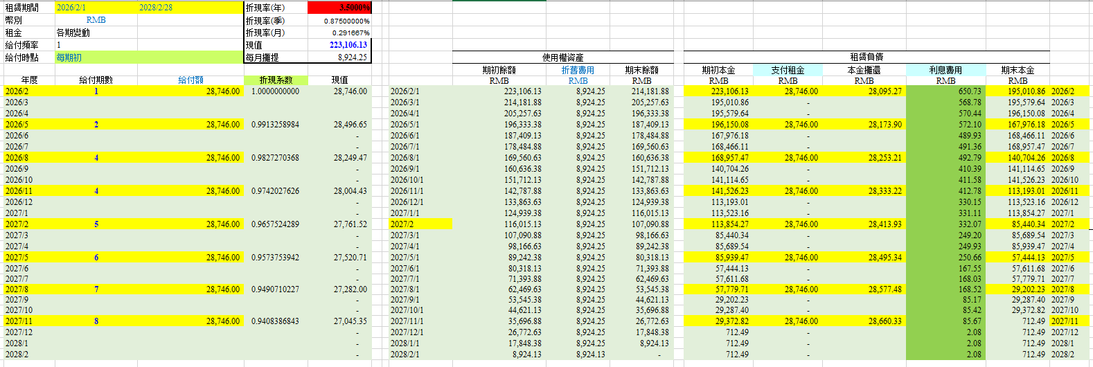 1.租赁开始日,按尚未支付的租赁付款额的现值对租赁负债进行计量