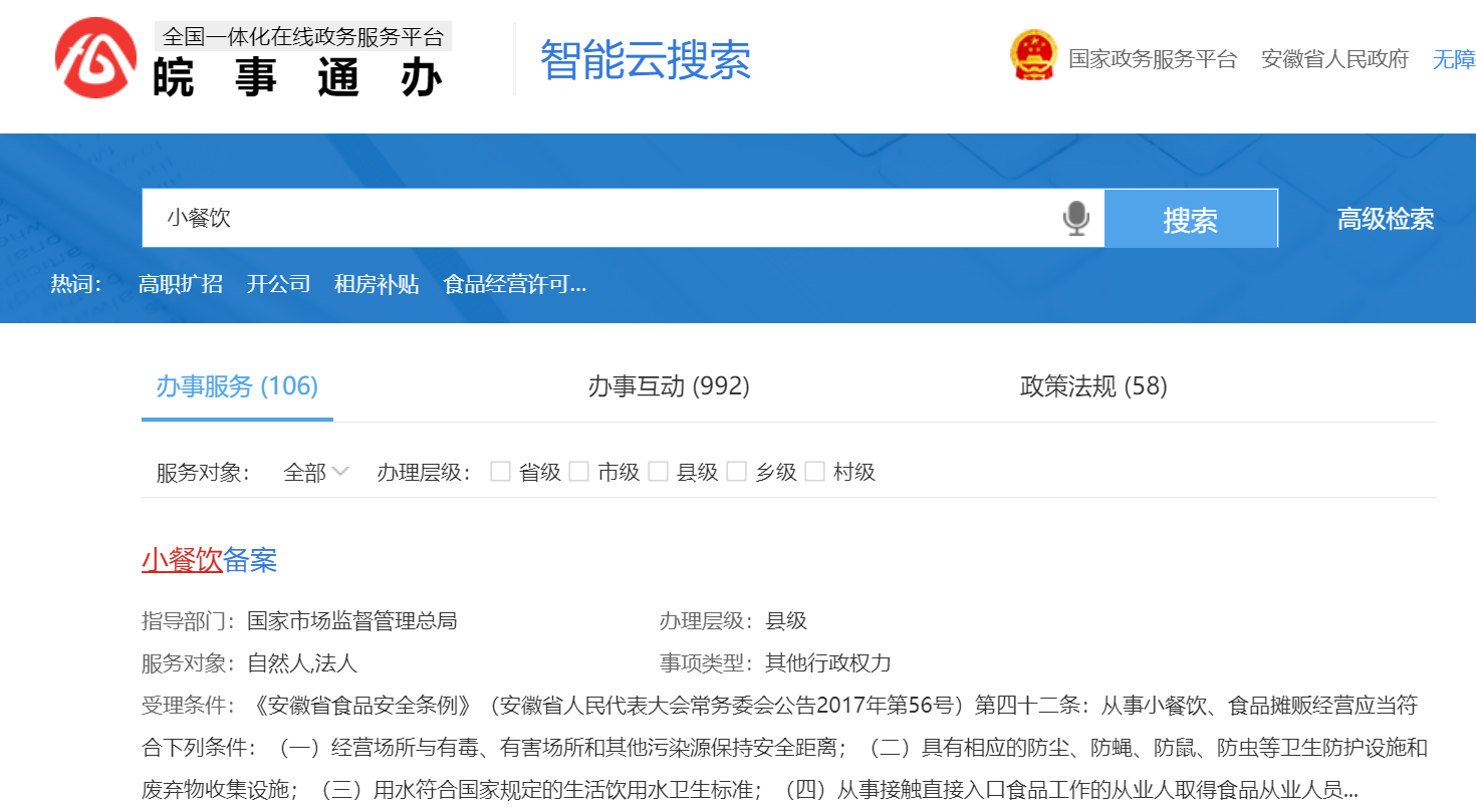 安徽省小餐饮公示卡的申请流程有吗?