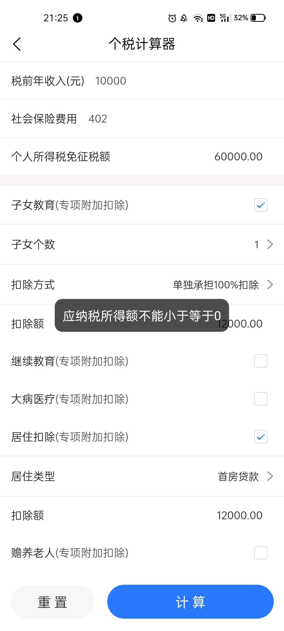 老师您好,我想问一下个税问题,我的工资一万多,孩子上幼儿园,赡养一位老人,房贷1400,个税扣多少