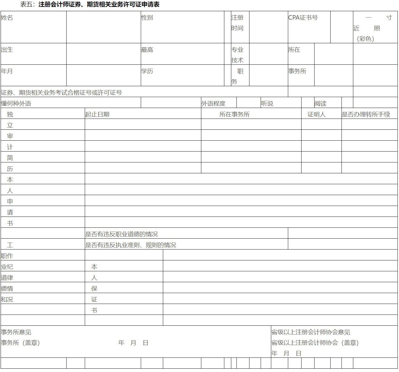 (二)注册会计师填写的《注册会计师证券期货相关业务许可证申请表》或者许可证复印件;
