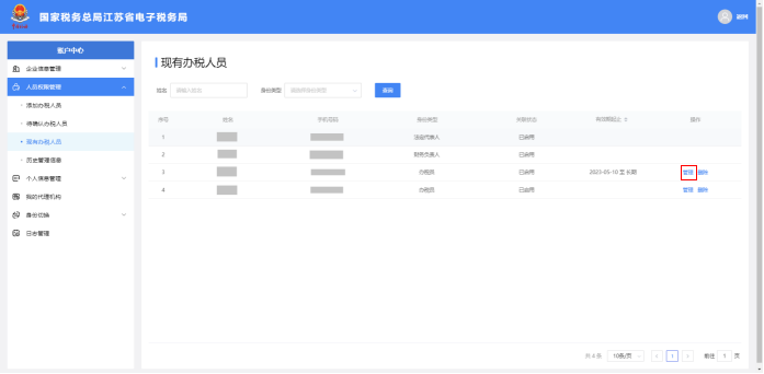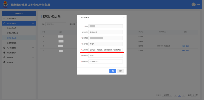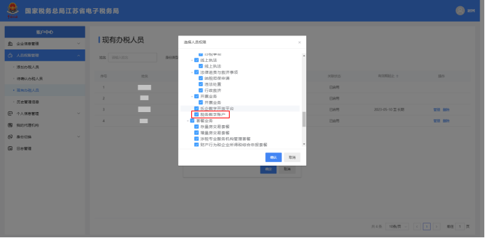 出现此情况可能您没有相应的操作权限。请您企业的法人或财务负责人以“企业业务”身份使用新版登录电子税务局,进入账户中心在“现有办税人员”中找到您,点击【管理】,在“人员权限”模块查看,是否勾选了“税务数字账户”,若未勾选,请进行“勾选”后点击【确认】按钮。 提醒:企业的“人员权限”设置完成后,请您使用新版登录电子税务局进行【税务数字账户】模块操作。