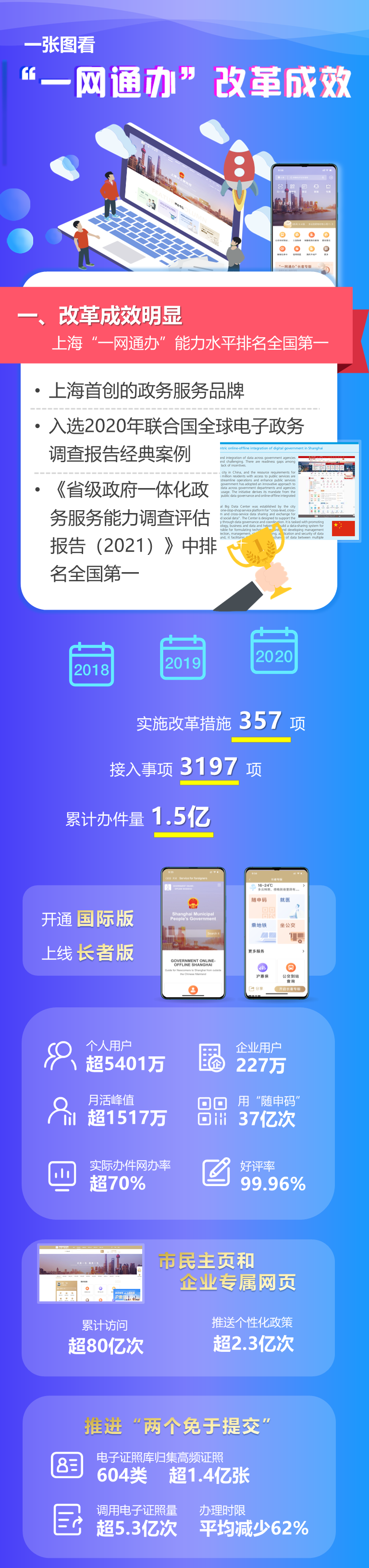 上海“一网通办”改革已经实施三年,2018年7月1日,“一网通办”平台上线试运行,在全市各区、各部门的共同努力下,在广大企业和群众的积极参与和支持下,取得了一定的改革成效。